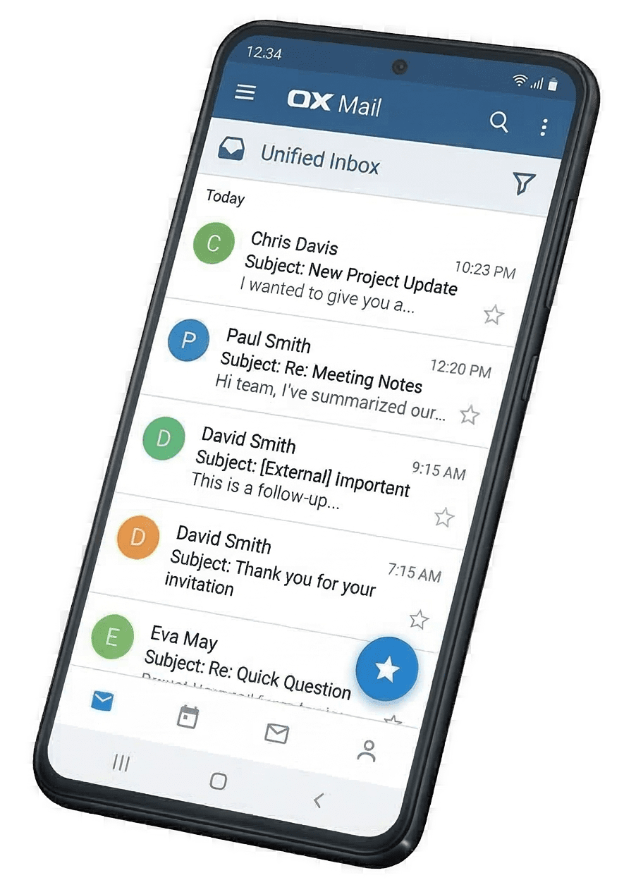A modern email and productivity suite for real businesses. Run it in the cloud (OX Cloud) or on-prem (OX App Suite). It is always secure, scalable, dead simple to manage with Connecteeva, without the hyperscaler price tag.