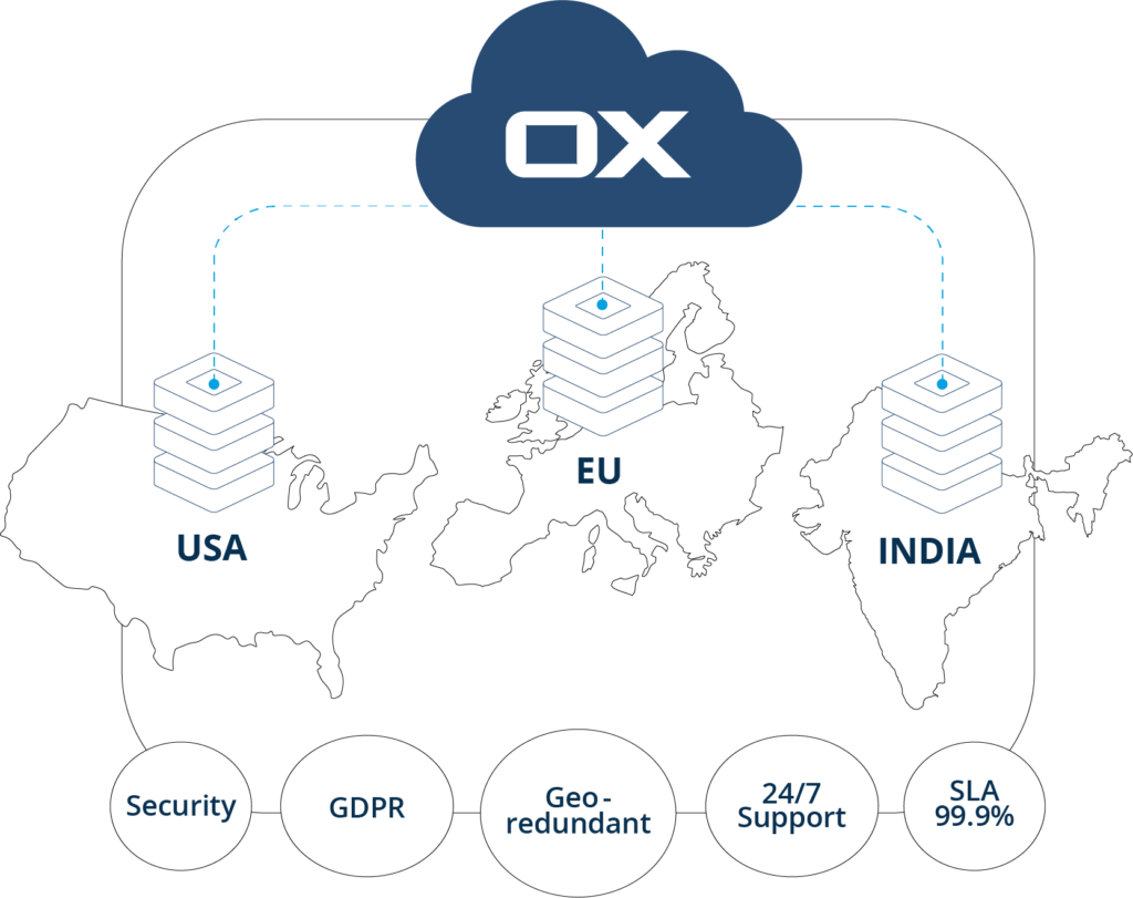 OX Cloud is a professional, easy to use email platform that still offers a full range of advanced features. It is a fully hosted email and webmail solution, available in a choice of datacenters located in Europe, the USA, or India.